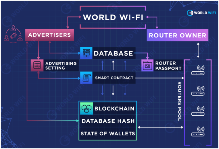 El proyecto World Wi-Fi es el resultado de una red Wi-Fi gratuita y descentralizada que funciona a nivel mundial, basada en routers privados que generalmente son routers residenciales. Todos los propietarios de routers pueden compartir su conexión Wi-Fi, permite a los invitados que se conecten. En el procedimiento el propietario, gana cripto-moneda para esta cuenta compartid. Al cabo, todos ganan: mientras que los visitantes tienen acceso gratuito a Internet, los propios enrutadores generan ingresos y los publicistas llegan a sus clientes. World Wi-Fi es un proyecto global que la comunidad ha construido.